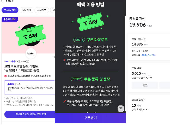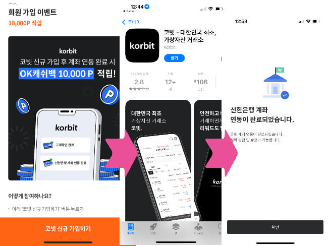 코빗 어플에서 비트코인을 무료로 받을 수 있다 이때 필요한 것들이 있는데 바로 신한은행 계좌와 T멤버십 애플리케이션과 시럽 애플리케이션이다. 코빗 어플을 바로 가입해도 되지만 시럽 애플리케이션을 연동해서 코빗 애플리케이션에 가입을 하고 신한은행 계좌를 연동을 시키면 현금처럼 사용 가능한 ok캐시백 포인트 1만 원을 이벤트로 지급한다. 가입만 해도 현금을 주는 이벤트니 꼭 참여 하도록 하자 그리고 비트 코인을 무료로 받기 위해서는 T멤버십 을 이용하면 되는데 현재 5월 12일 까지 T멤버십 어플리케이션 에서 코빗 어플에 등록이 가능한 쿠폰나누어 주는데 기존 회원은 비트코인 5천원 쿠폰 , T우주회원 이라면 1만원 상당희 비트코인 쿠폰을 증정한다 꼭 날짜가 지나기 전에 다운을 받도록 한다 쿠폰을 코빗 어플리케이션 으로 가서 쿠폰 번호를 등록하면 위에 첨부한 사진 처럼 무료 비트코인을 증정한다 코빗 어플 가입시 추천인을 등록 할수 있는데 따로 추천할 사람이 없다면 885CD3 을 입력해줘도 좋다 친구 초대 하고 추천받은 사람이 5000원을 받을 수 있다. 여기까지 다 했다면 코빗 어플 내 이벤트 메뉴에 가면 처음 신규 가입한 사람들에게 5천원을 추가로 지급 하고 1만원 이상 매수 거래 하면 5000원을 추가로 지급한다 이렇게 되면 2만 원 ~ 2만 5천 원 상당의 수익을 회원 가입과 동시에 가질 수 있기 때문에 꼭 이 방법으로 가입 이벤트를 진행할 것을 추천한다.