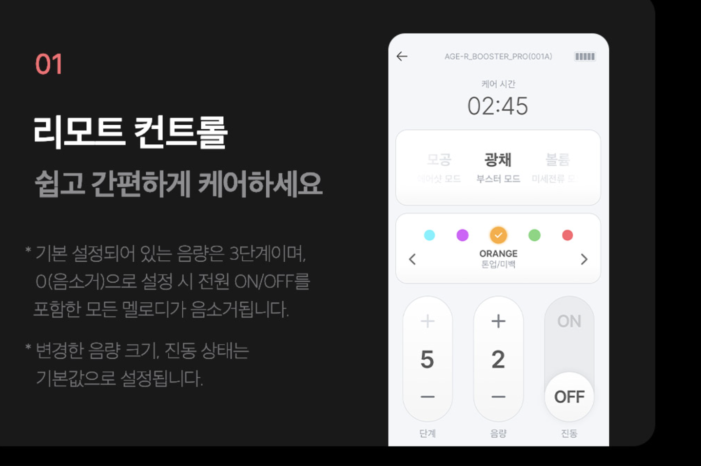- 케어모드가 다양해야 하고 세기 조절이 가능해야함