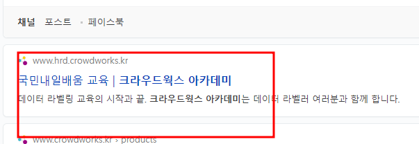 1. 내일배움카드 사이트에 로그인 후 검색창에 '크라우드웍스'를 검색해 주세요
