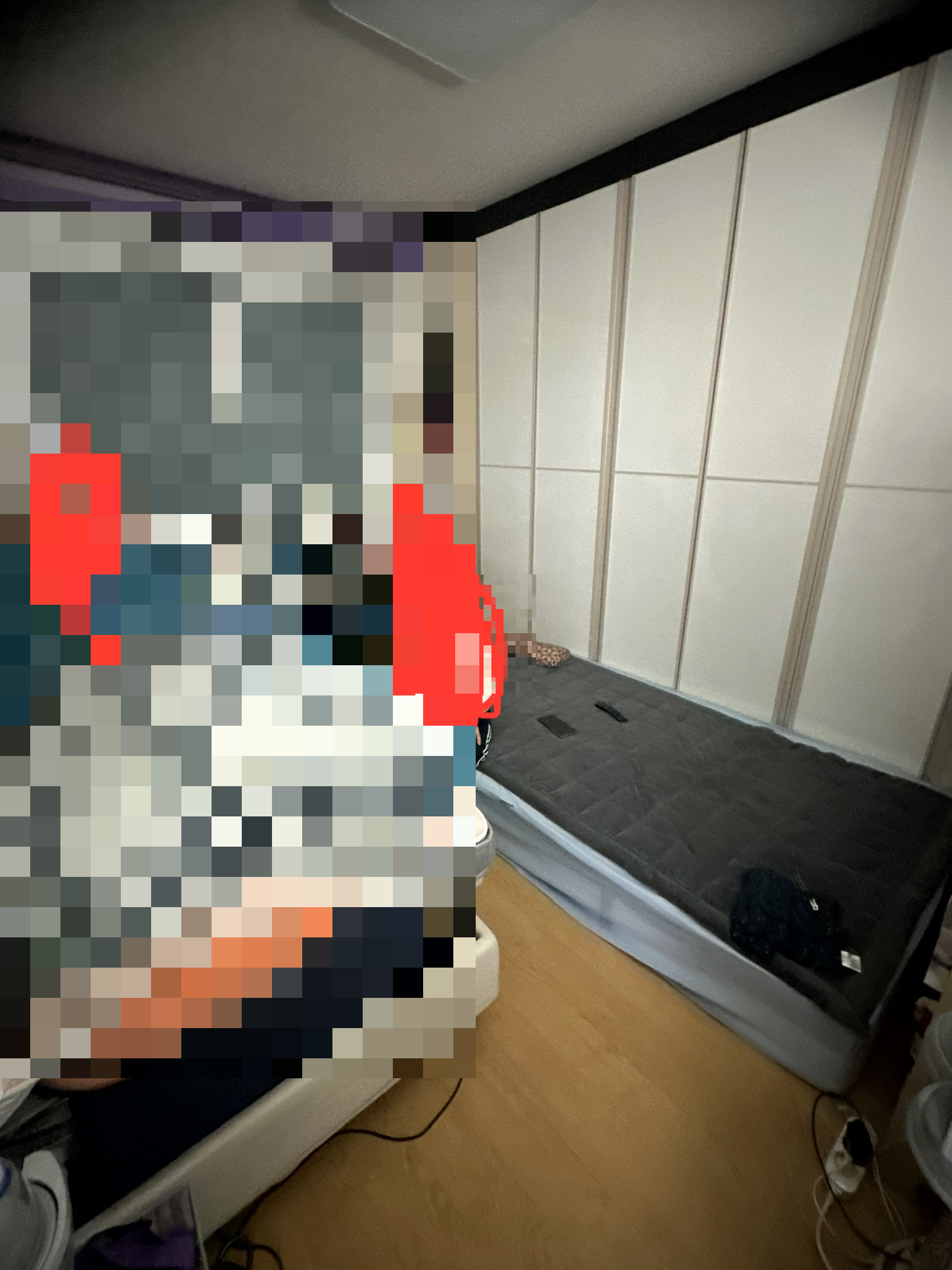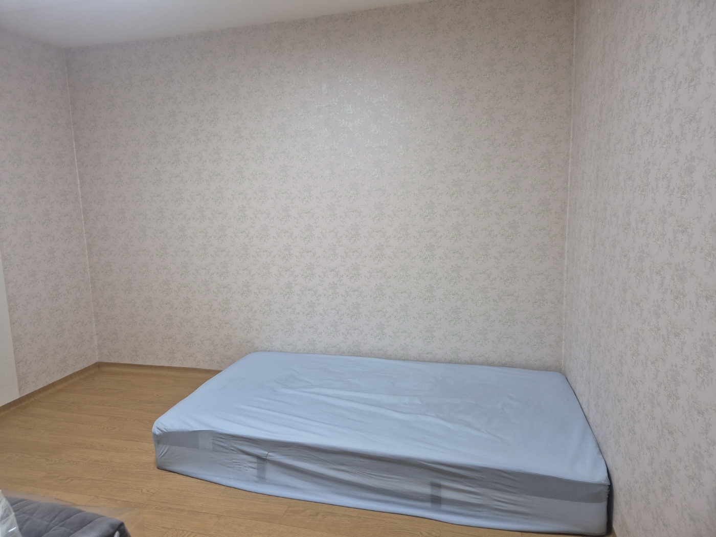왼쪽이 똑같은 안방인데 붙박이장이 방의 3/1을 차지 하고 있어서 무척이나 좁았습니다 더블싱글 침대를 두개를 놓으려니