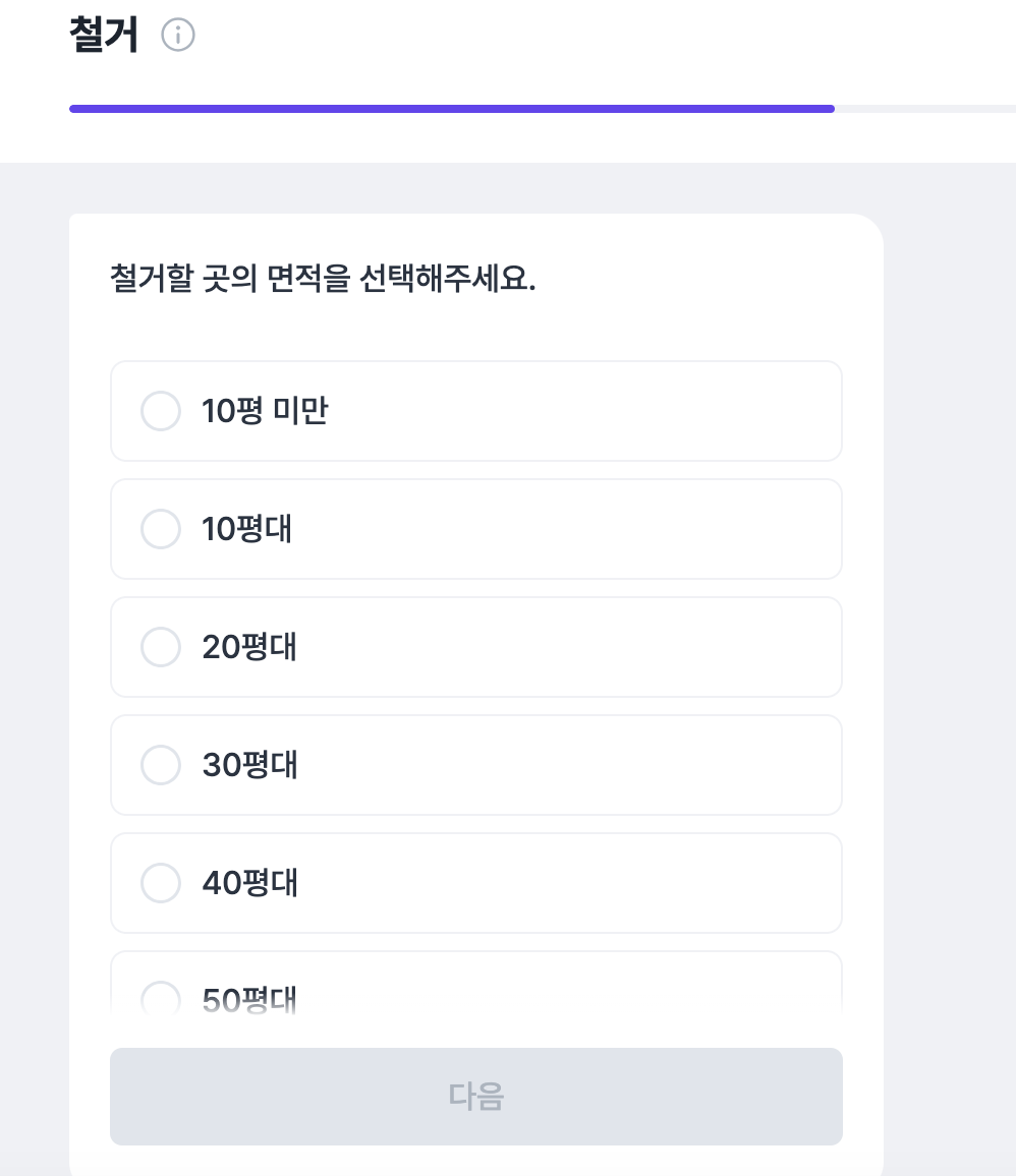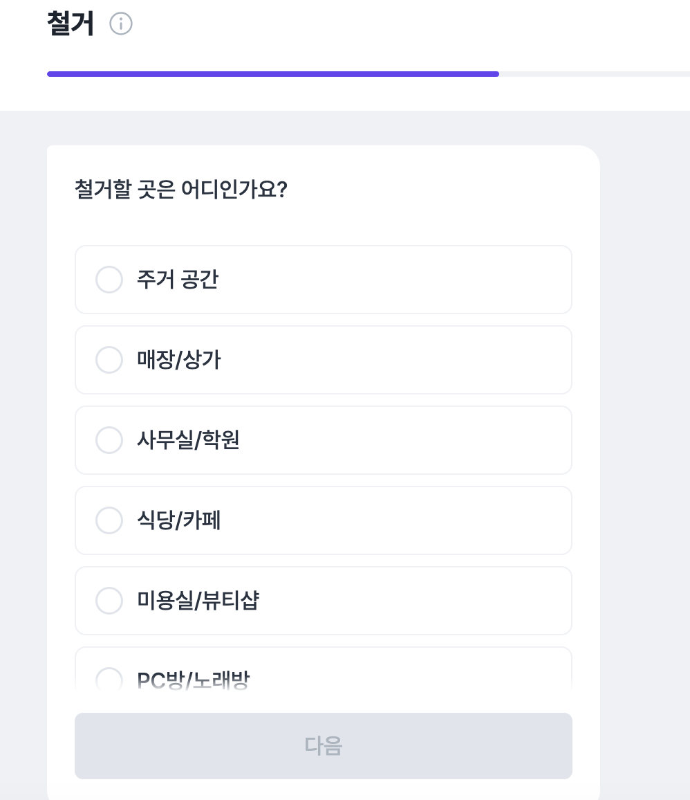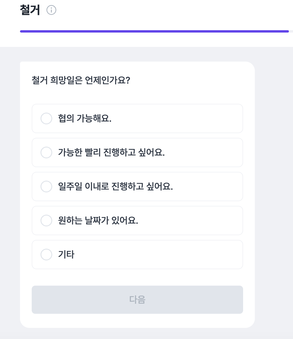 철거 날짜를 정하고 , 우리집 환경이 어떤 곳인지를 대략적으로 선택할 수있어요