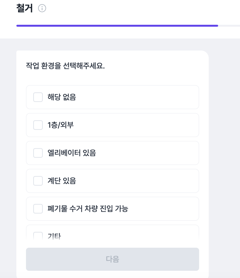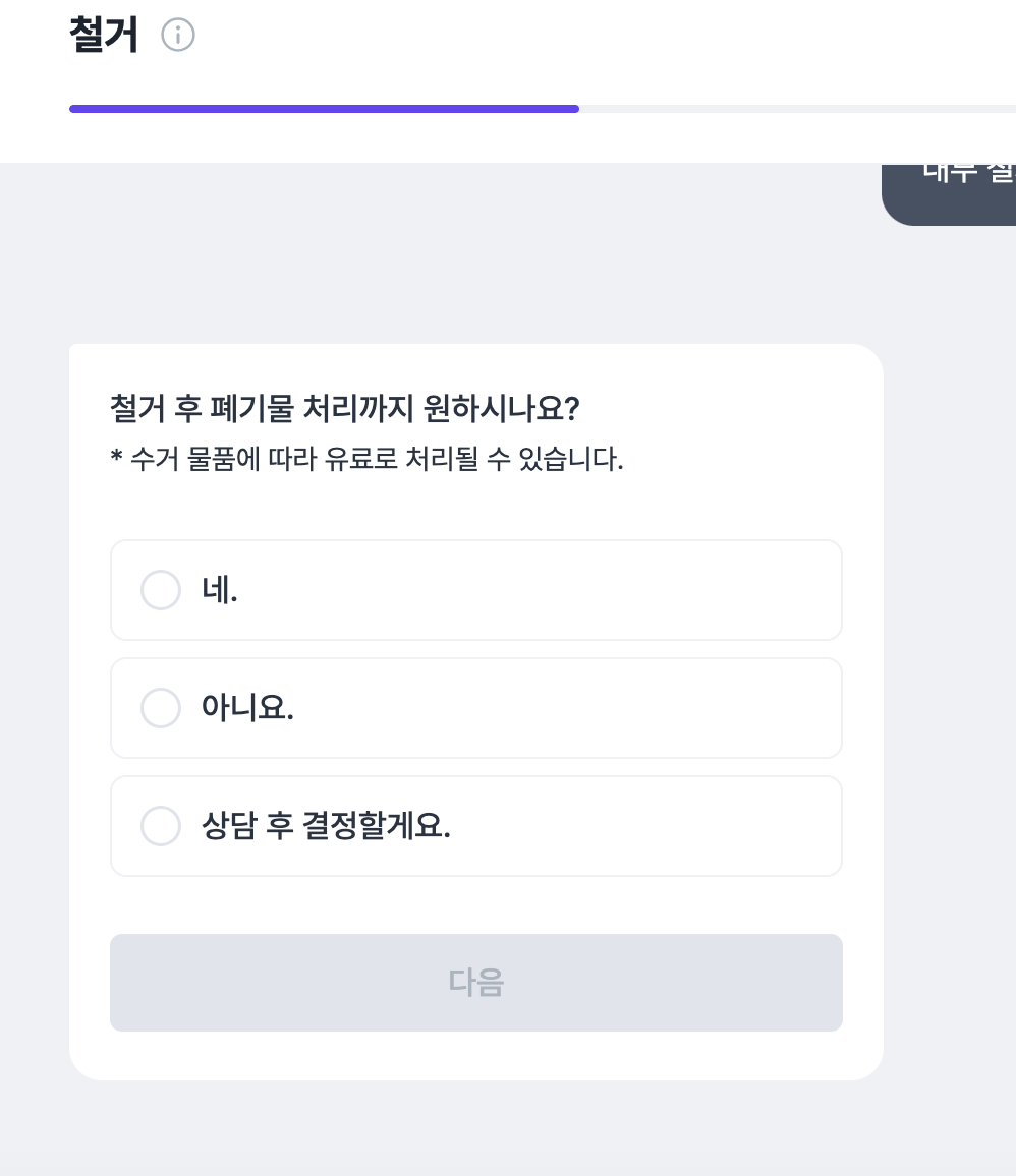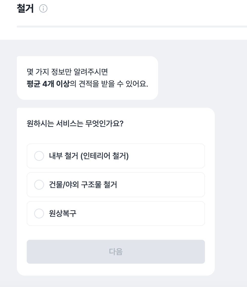 철거 날짜를 정하고 , 우리집 환경이 어떤 곳인지를 대략적으로 선택할 수있어요