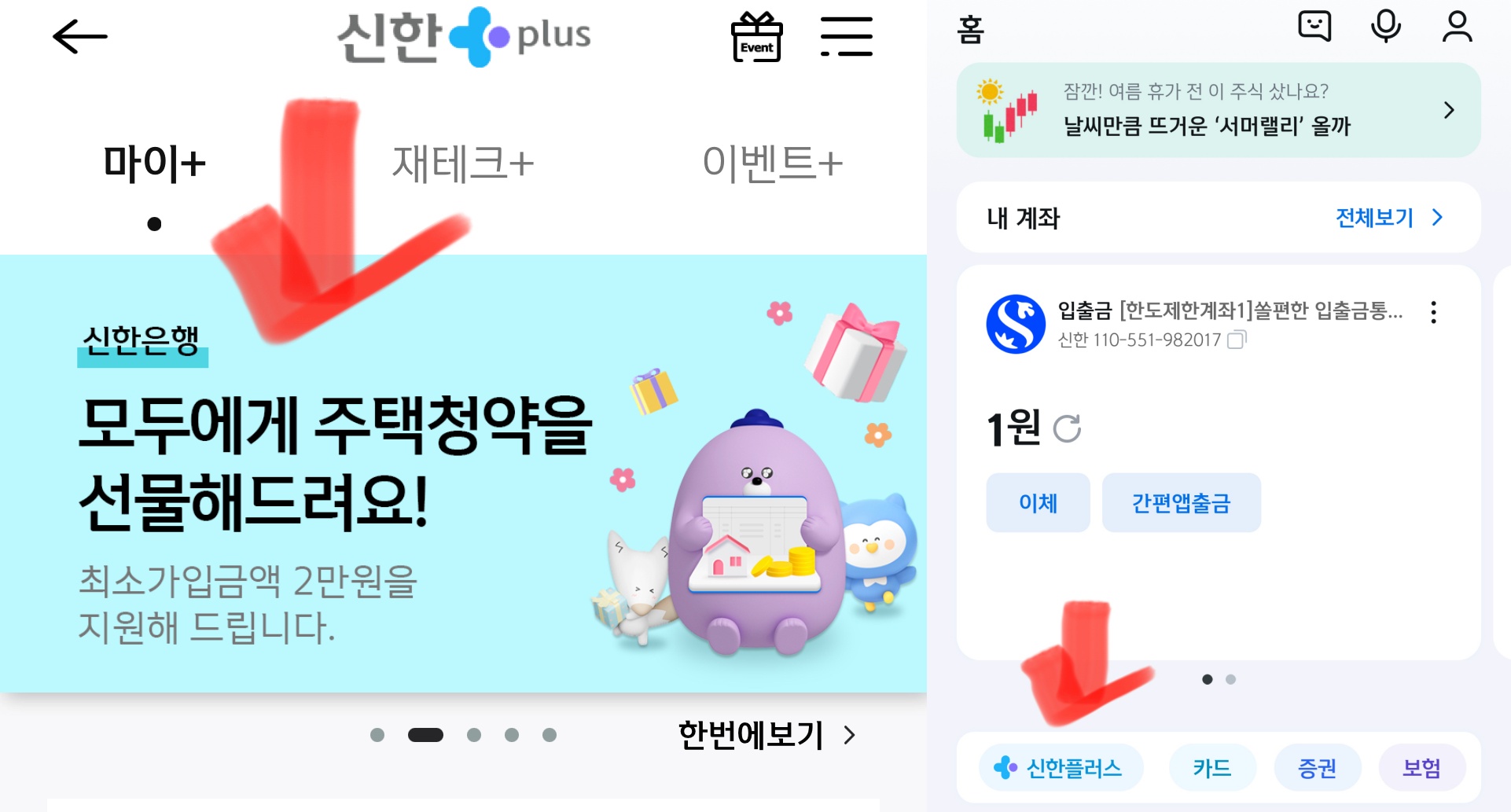 신한은행 어플 메뉴에서 '신한플러스'로 들어간다 본인 명의로 만들고자 한다면 2004년 생 20세부터 가능하고 신한은행 에선 선착순 5만 명에게 신한은행 포인트 2만 점을 추가로 제공한다. 23년 6월 19일부터 8월 31일까지 진행하고 청약통장 신규 가입자여야 한다.