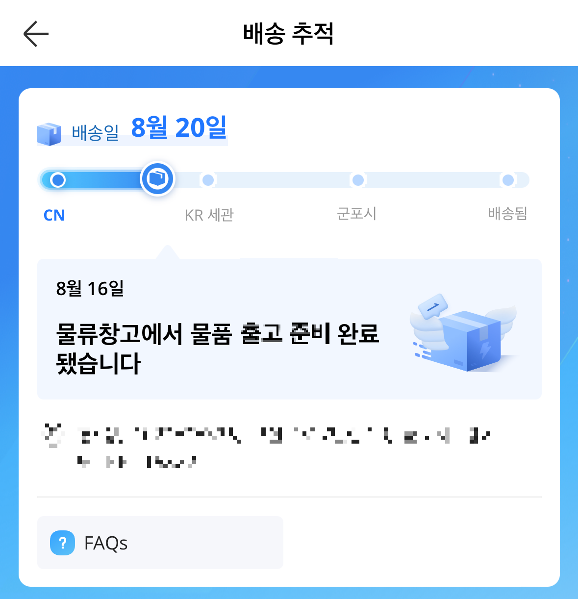 클릭하면 현재 날짜로 어디까지 배송진행이 되었는지를 알려줍니다 cn 은 차이나로 중국을 뜻하는 것이고 중국에서 배, 비행기로 배송이 시작되고 한국에 도착하면 세관에서 통관을 하고 난 뒤 한국 택배로 도착을 하게 됩니다