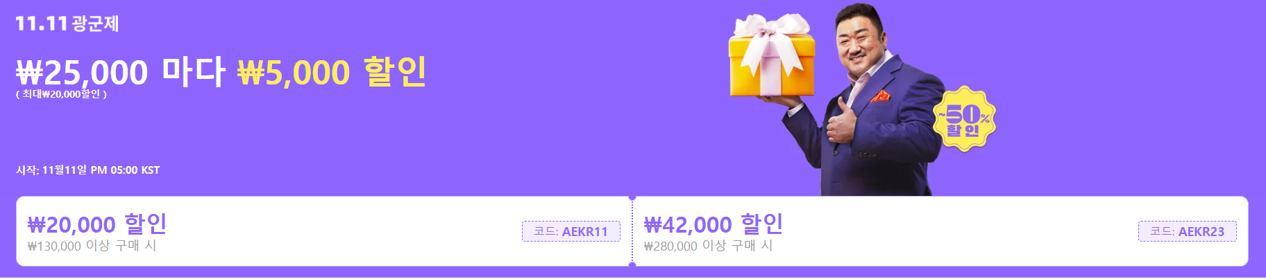 할인코드를 이용하면 한국 원화로 2만 5천 마다 5천원을 할인해 주는 할인 코드를 발급합니다 미리 적용해 두셔서 더 많은 할인을 받으시면 좋습니다