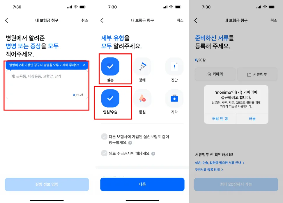 실손보험 및 수술비 보험 청구 방법
