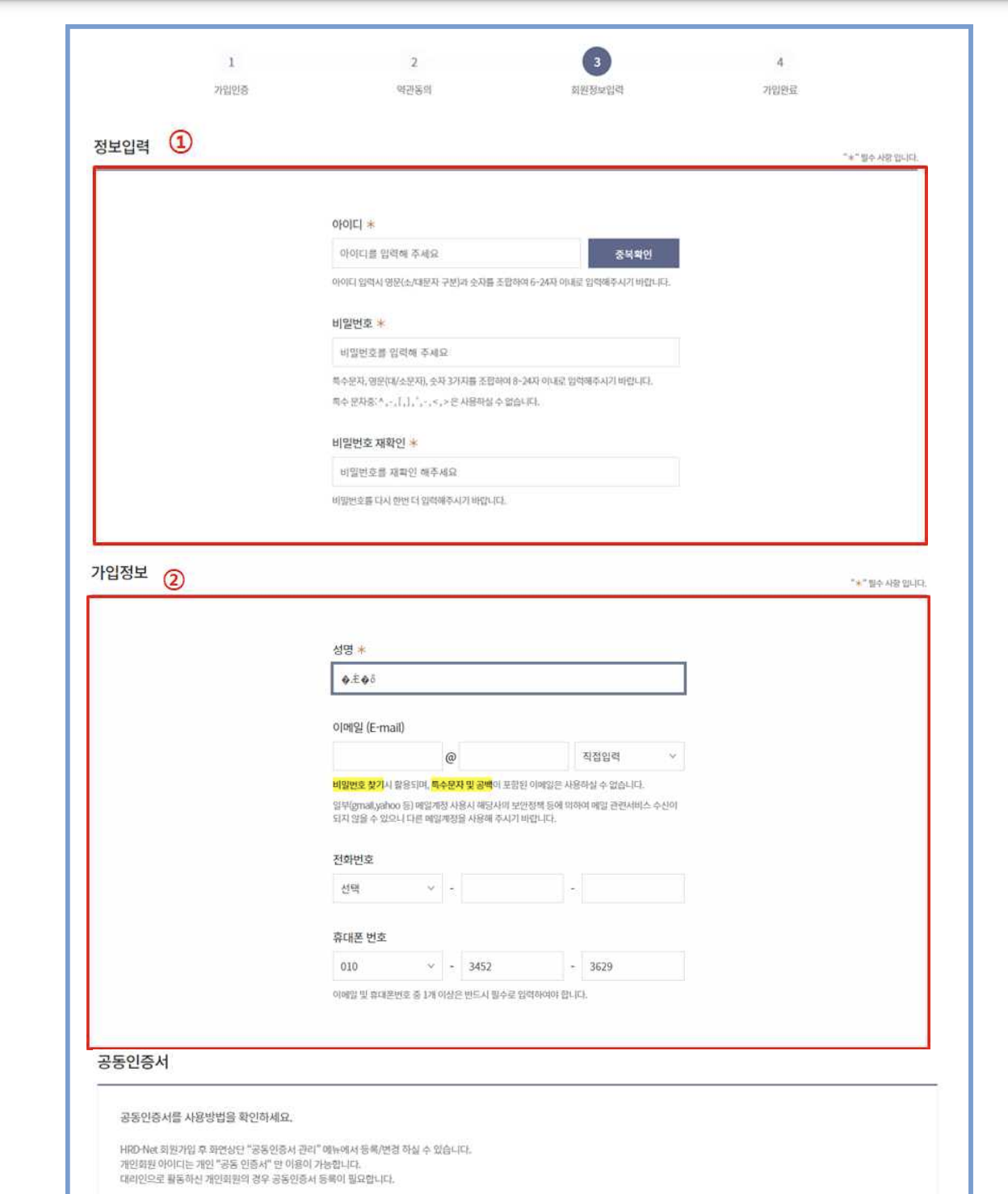 아이디, 비밀번호, 이름, 전화번호, 휴대폰번호 등 자신의 정보를 꼼꼼하게 적은 뒤 회원가입을 해주세요