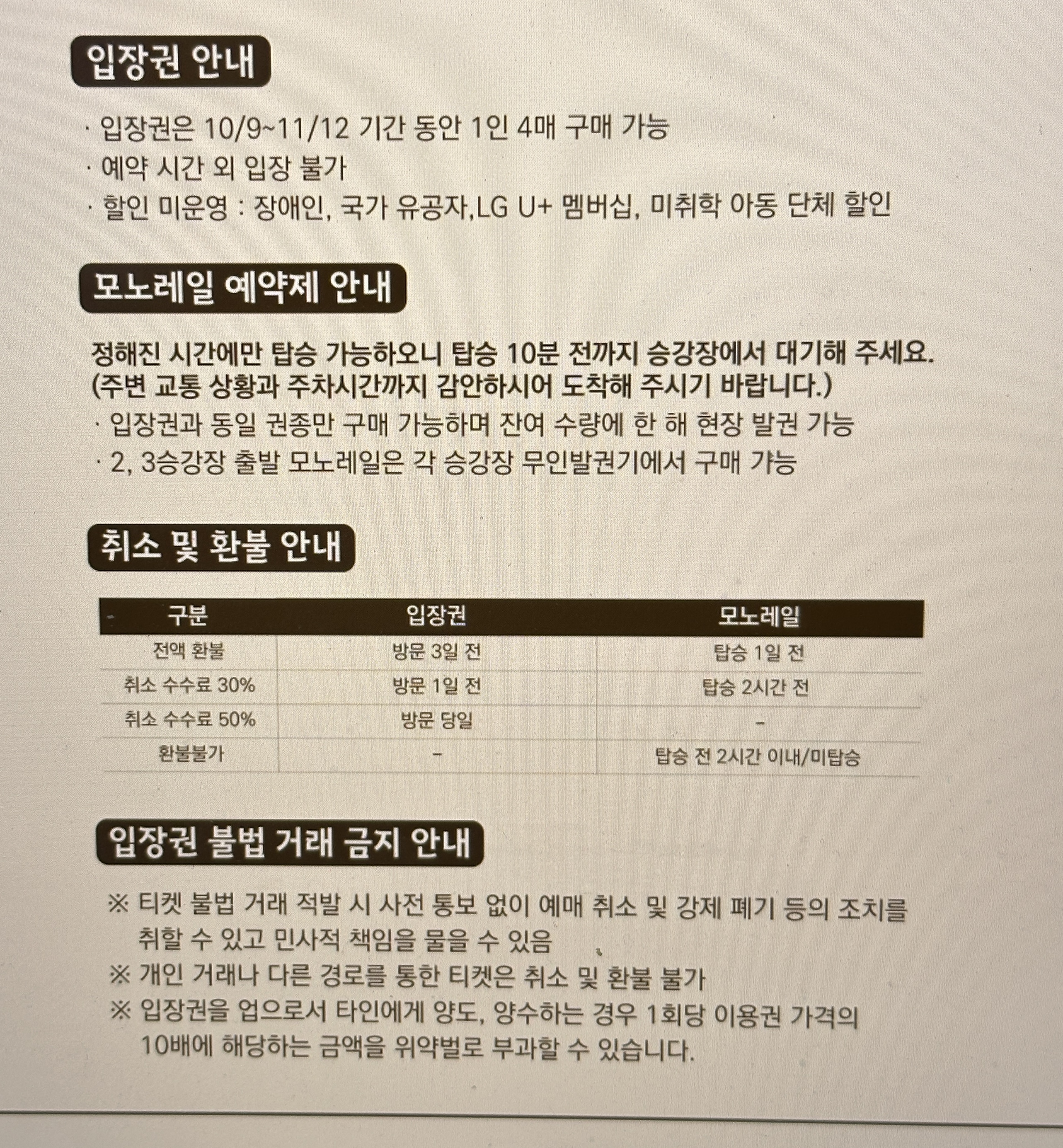 모노레일 예매 후 환불 시 위약금 안내 및 주의 사항