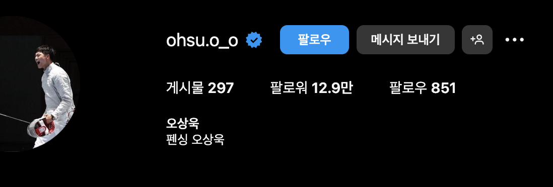 에 출연해서 많은 팬들을 입덕 시켰는데요 오상욱 선수는 세계적인 선수인 만큼 일상생활 이나 국제 경기의 모습들 까지 인스타그램에서 만나보실 수 있습니다 오상욱 선수 인스타그램은 지금 축제 분위기 인데요 여러분도 선수 인스타그램에 축하의 메시지를 남겨보시면 어떨까요?